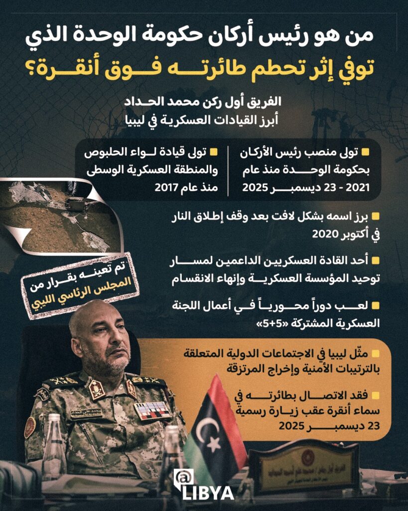 - من هو رئيس أركان حكومة الوحدة الذي توفي إثر تحطم طائرته فوق أنقرة؟