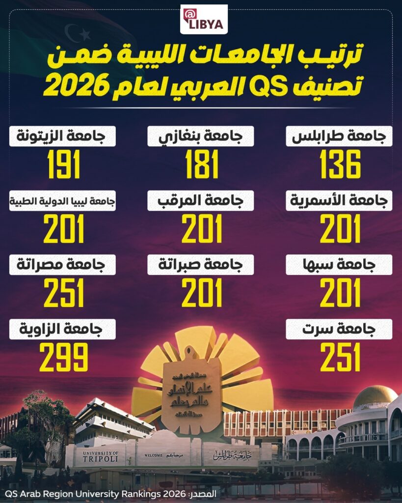 شهد تصنيف QS Arab Region University Rankings 2026 حضورًا لعدد من الجامعات الليبية في قائمة أفضل الجامعات على مستوى المنطقة العربية، في مؤشر يُبرز استمرار تطور التعليم العالي في ليبيا رغم التحديات.