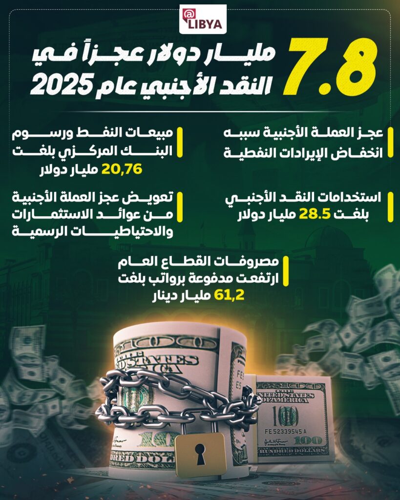 ليبيا.. 7.8 مليار دولار عجزاً في النقد الأجنبي خلال عام 2025