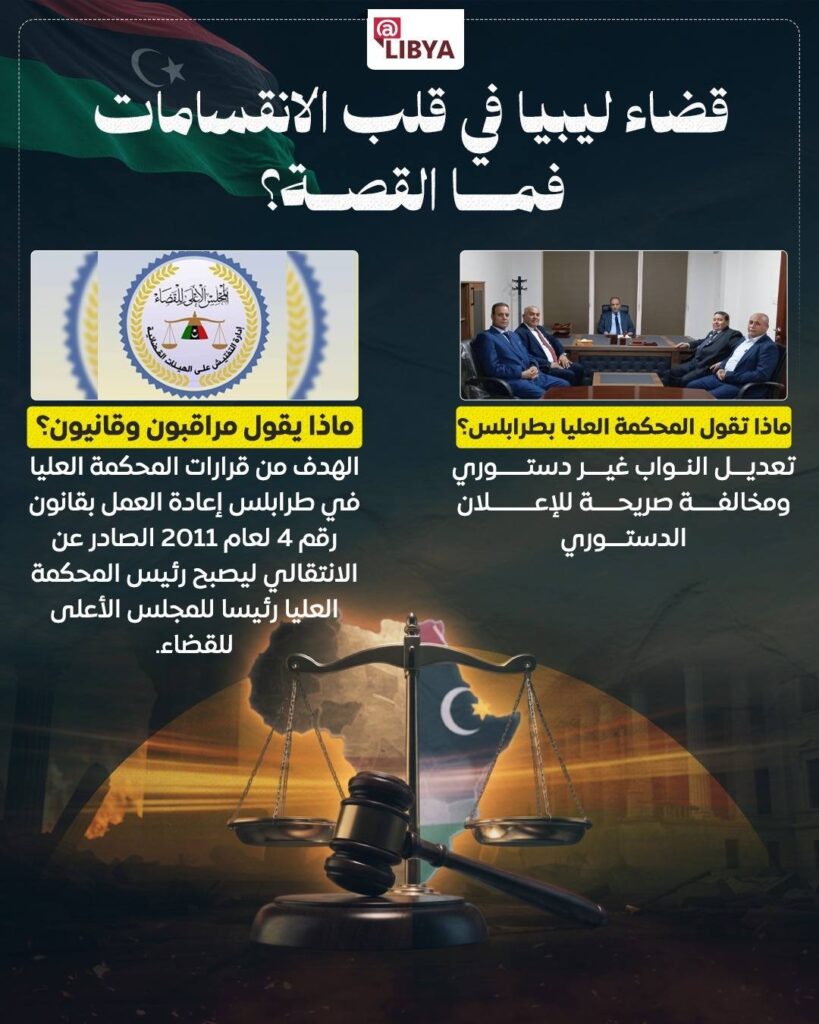تعود شرارة الأزمة إلى الحكم الصادر عن الدائرة الدستورية بالمحكمة العليا في طرابلس، والذي قضى بعدم دستورية التعديل الذي أقره مجلس النواب على قانون نظام القضاء، معتبرًا أن التعديل خالف الإعلان الدستوري، ولا يستند إلى أساس قانوني سليم.