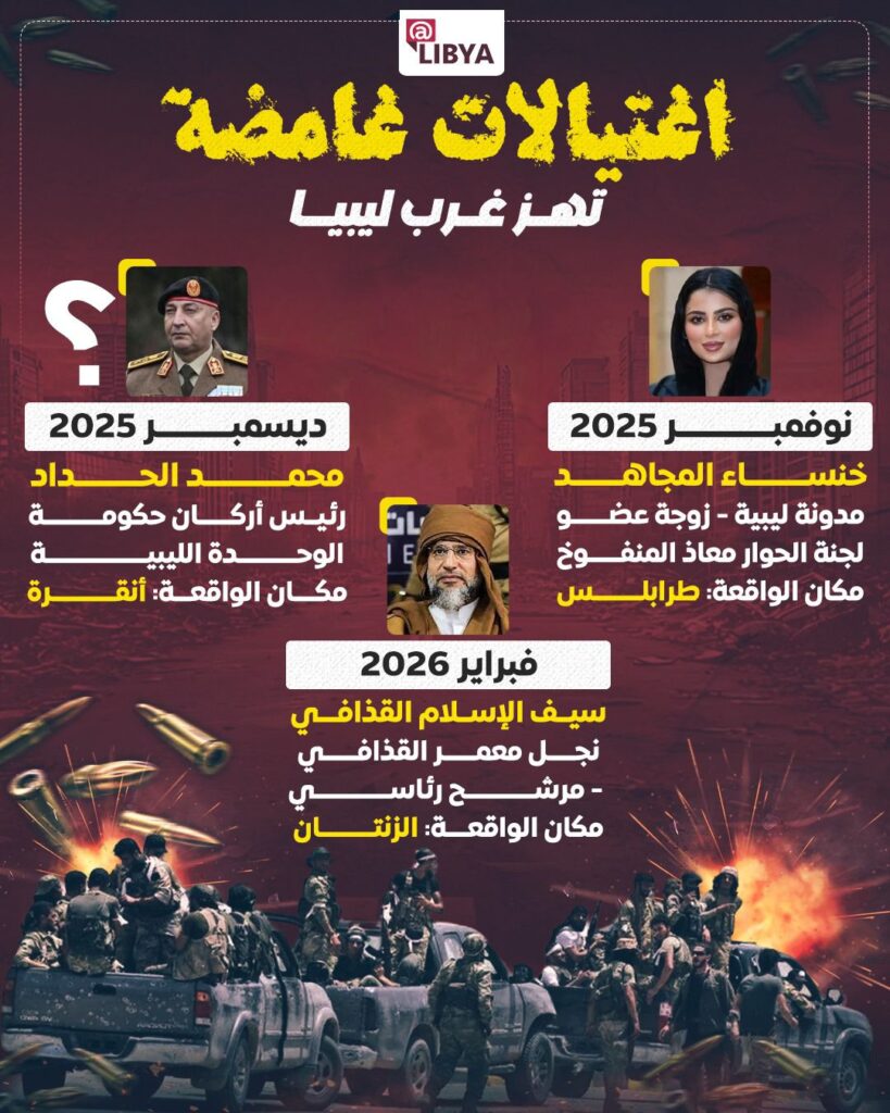 وجاء فبراير 2026 ليشكل الذروة الأخطر في هذا المسار، باغتيال سيف الإسلام معمر القذافي في مدينة الزنتان، وهو مرشح رئاسي وشخصية محورية في المشهد السياسي الليبي، ما اعتبره كثيرون ضربة مباشرة لأي مسار تسوية محتمل، ورسالة صريحة لكل من يفكر في إعادة تشكيل الخارطة السياسية خارج الأطر المفروضة بالقوة.