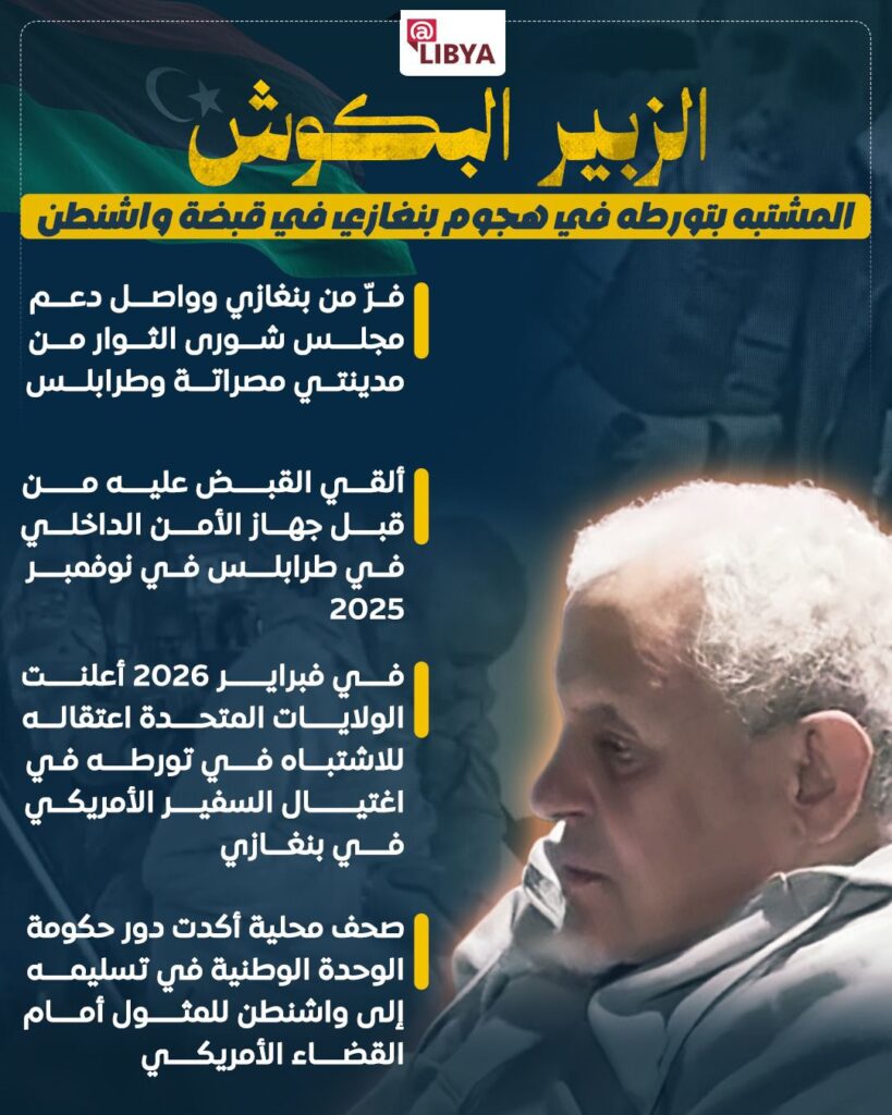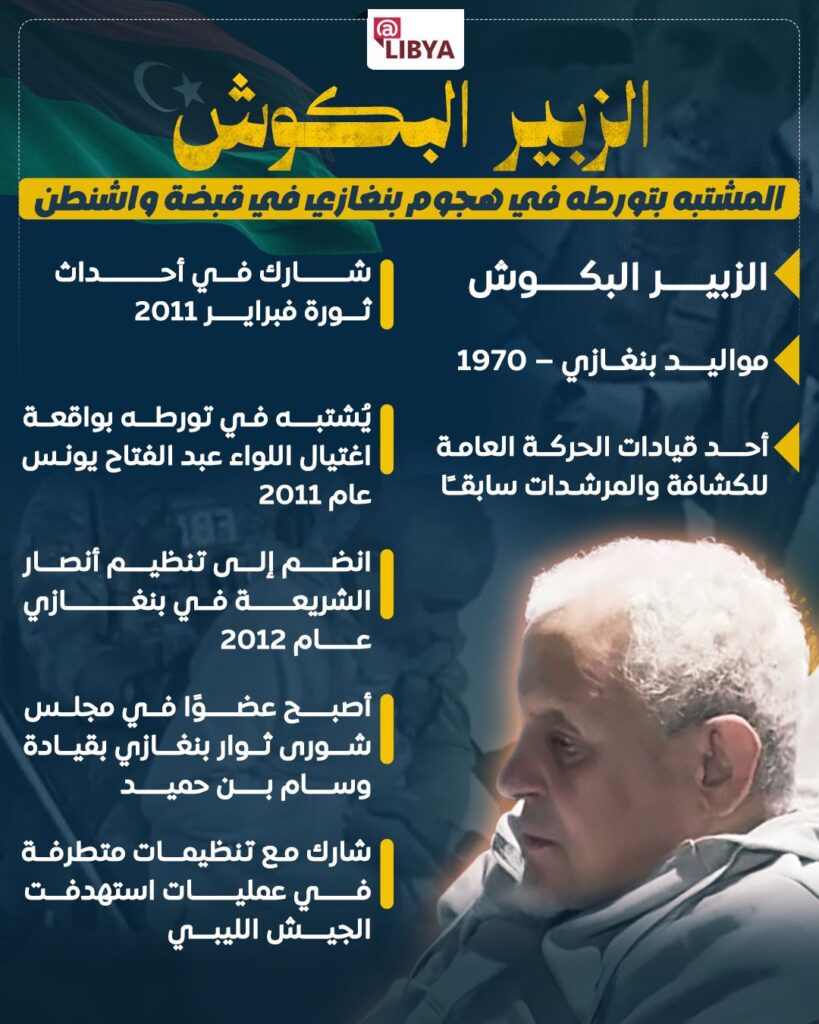 أعلنت الولايات المتحدة اعتقال الزبير البكوش، أحد المشتبه بتورطهم في الهجوم على القنصلية الأمريكية في بنغازي عام 2012، في خطوة تعيد هذا الملف إلى الواجهة مجددًا بعد سنوات من الغموض والملاحقات الدولية.